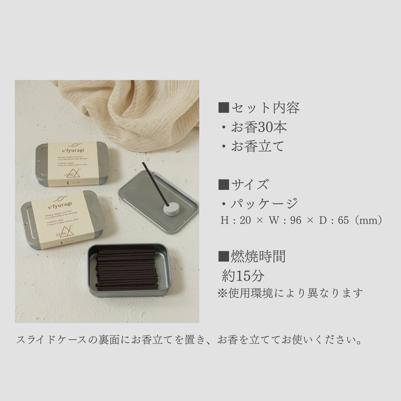 ・お香立て(スライドケースの裏面にお香立てを置き、お香を立ててお使いいただけます。)