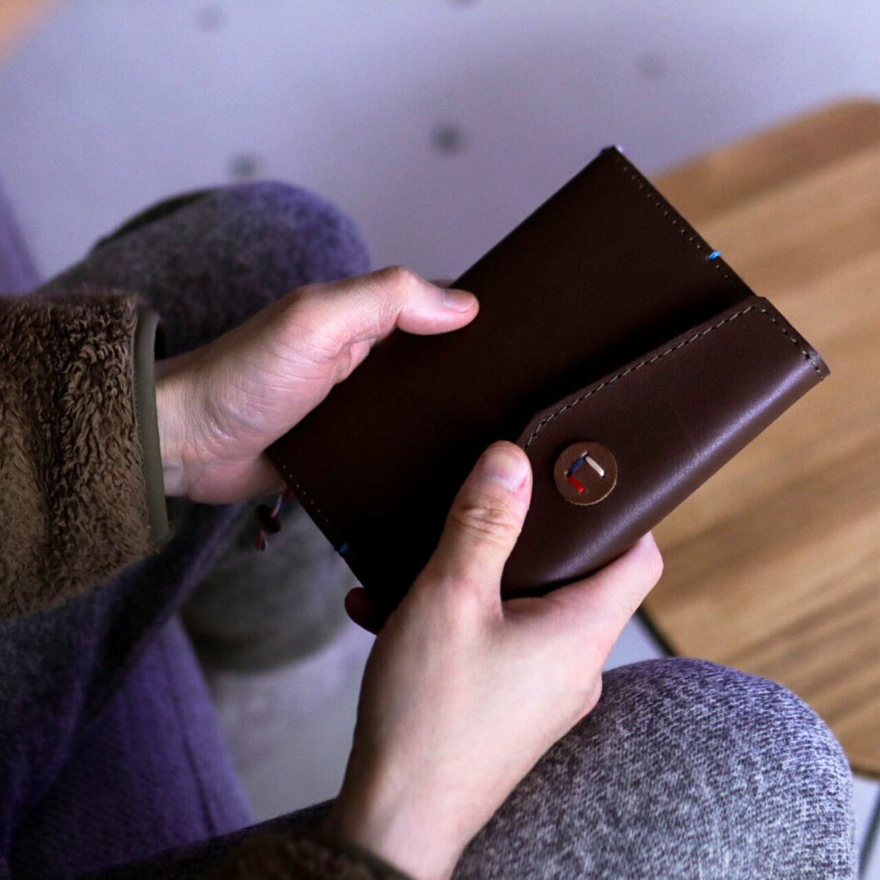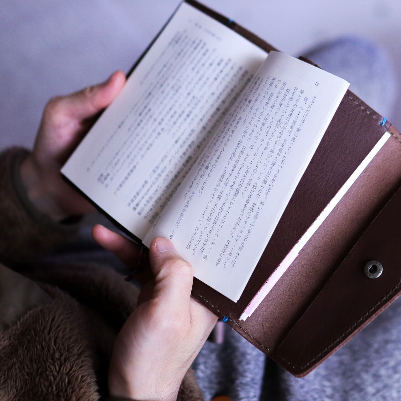 2段階ホックで文庫本の厚みにぴったり対応し、バッグの中でも本をしっかり守り傷つけません。