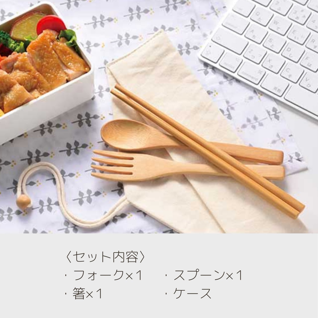 軽やかで丈夫な竹素材の箸、スプーン、フォークが揃い、自然の温もりを感じながらお食事を楽しむことができます。